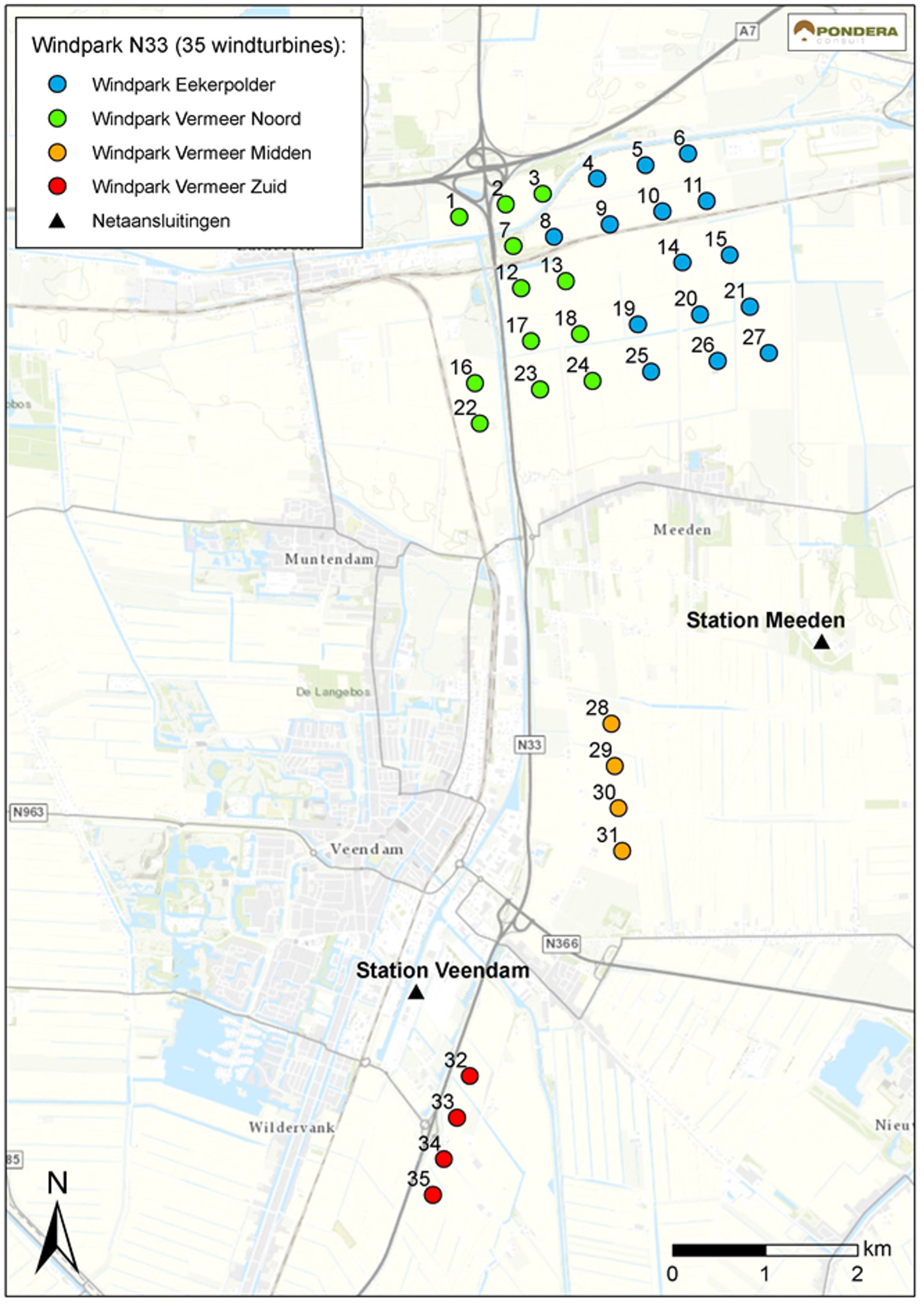 Het Windpark N33 bestaat uit 35 windturbines met ieder een vermogen van 4,3 MW. Het windpark wordt gevormd door twee deelparken:
